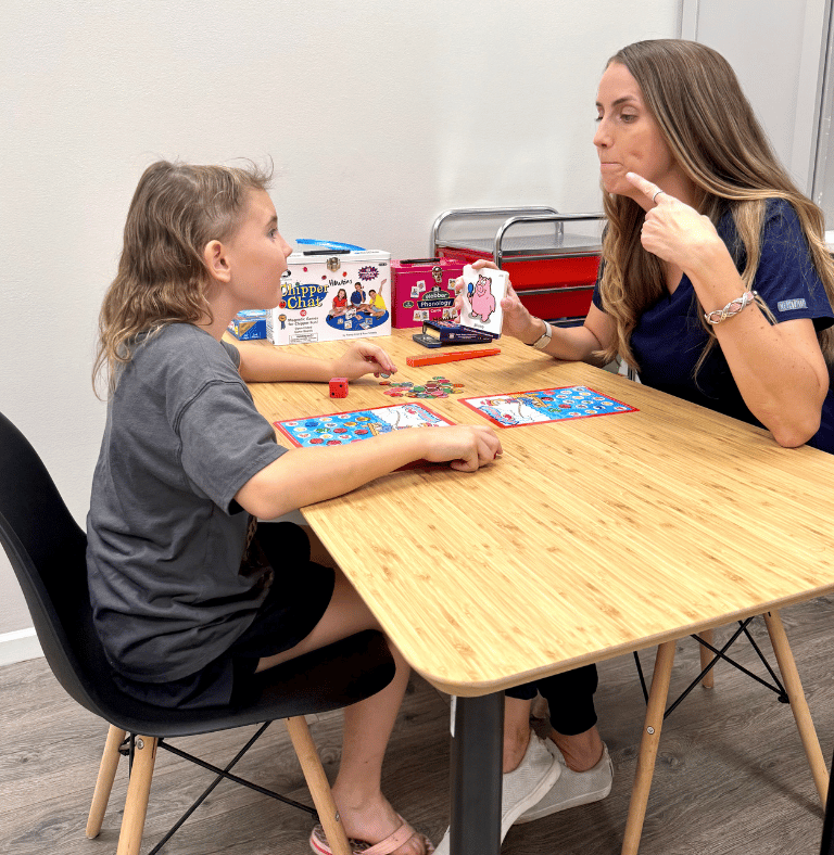 Our speech-language pathologist identifies which sounds your child needs support with and uses fun, play-based activities to teach accurate sound placement and movement. Therapy focuses on helping your child use clear speech sounds in words, sentences, and everyday conversation.