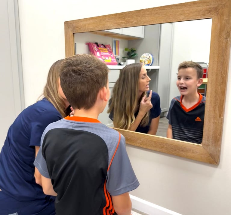 Through playful, targeted exercises, our speech-language pathologist helps your child learn how to rest their tongue correctly, close their lips, and breathe through their nose — building the foundation for strong communication skills and overall oral health.